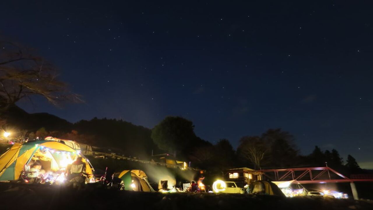 夜は照明が無いため晴れていれば綺麗な星空を見ることができ、夏は川遊びができます。