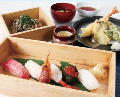 当店では、新鮮な海の幸、山の幸、旬の素材をたっぷり使用したお寿司と和食をランチ、ディナーにてバリエーション豊かにご用意しております。