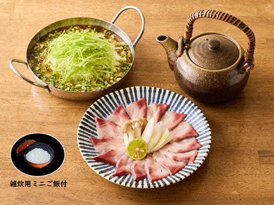 ●千切りレタスの合盛りしゃぶしゃぶ(産直鮮魚とブリのハーフ&ハーフ)
