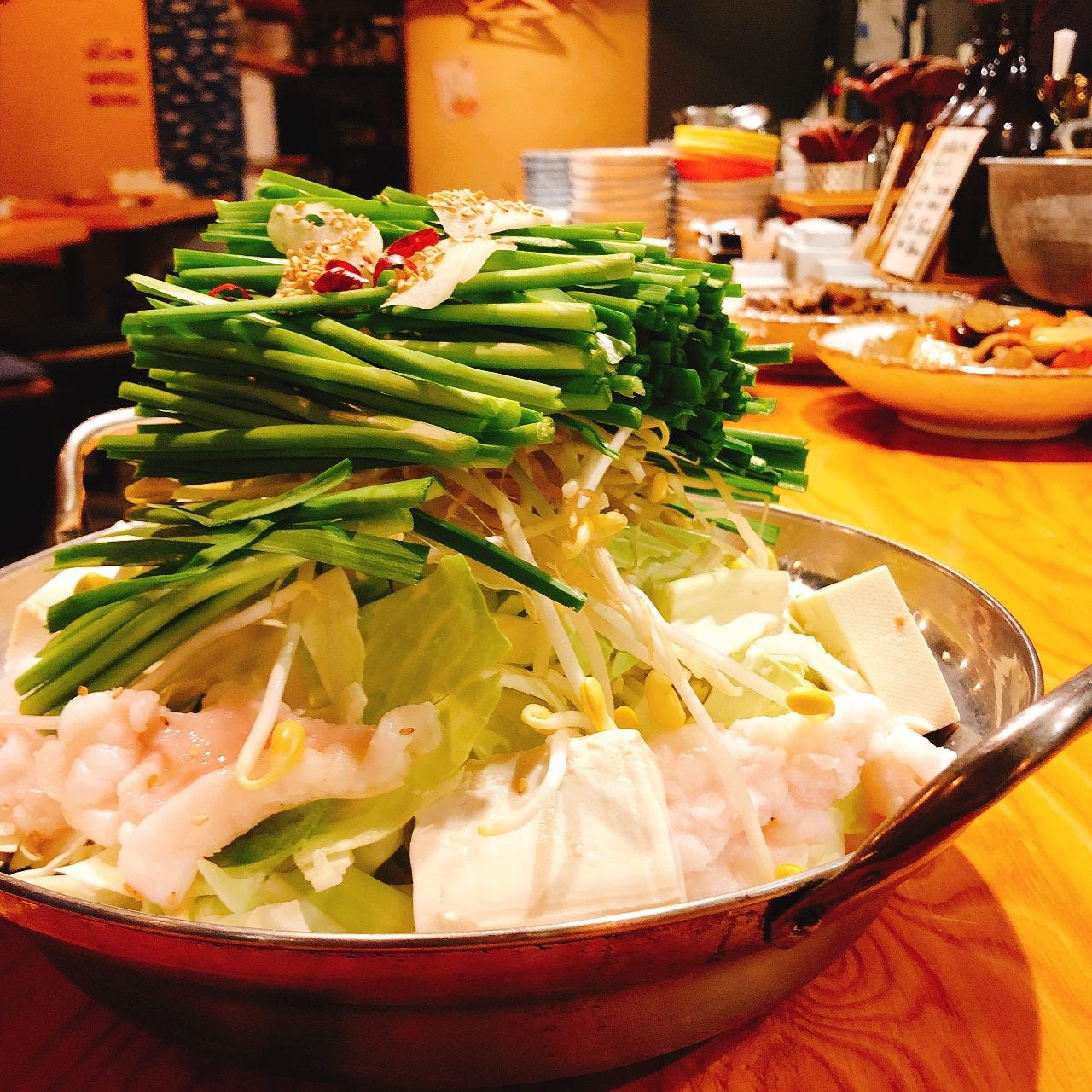 もつ鍋と活イカを焼酎ととともに味わえる『もつ鍋 芋』