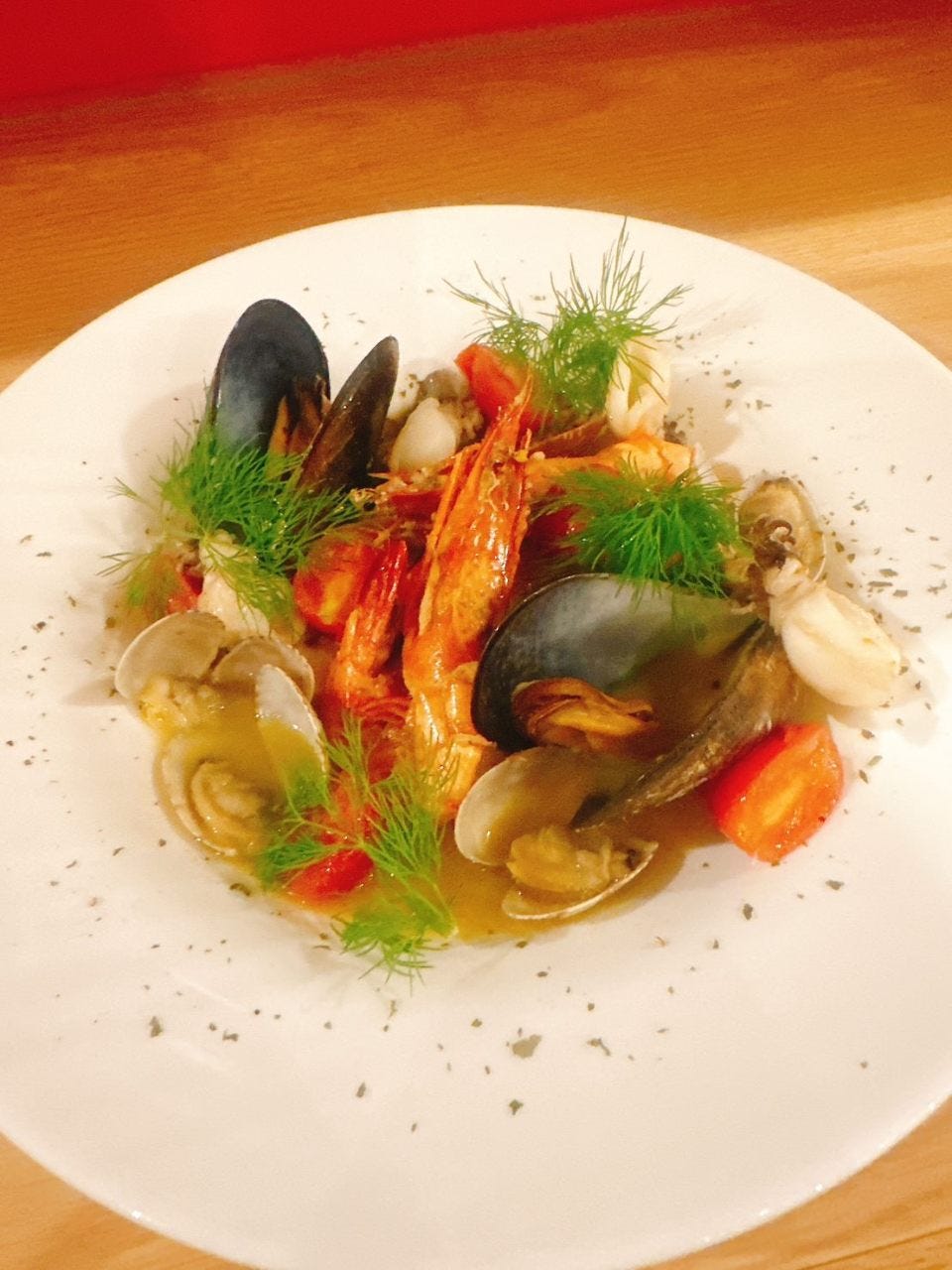 メイン料理にあります。前菜、パスタ、メインとお召し上がり下さい。