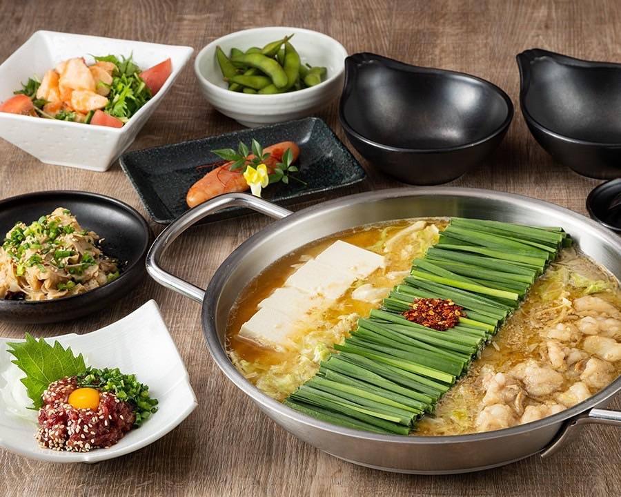 ・名物のもつ鍋と刺身3種盛りが付いた名物コース【全8品】4,000円