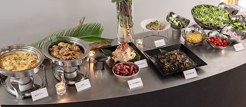 和が家カフェ自慢のランチビュッフェは、サラダバーや彩り豊かな副菜、メインディッシュ、ドリンクまでが揃った大満足の内容です。メインは毎日日替わりで、旬の食材を使った季節替わりのメニューをお楽しみいただけます。