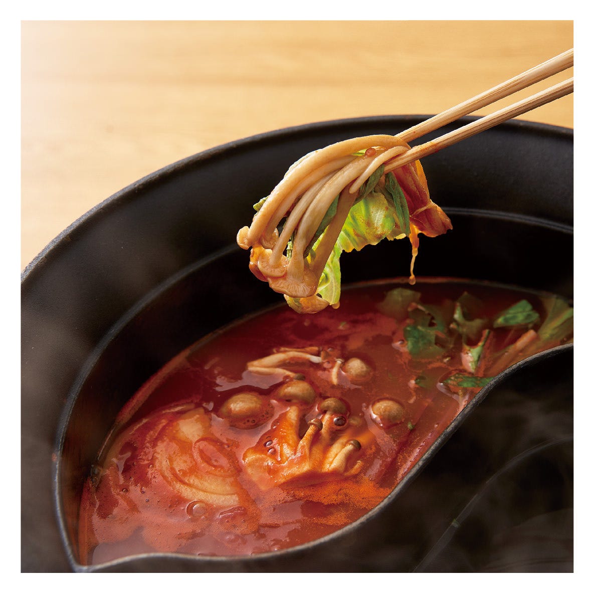 出汁(火鍋・カレー・豆乳・レモン&オリーブ)を追加して2色鍋もお楽しみください!