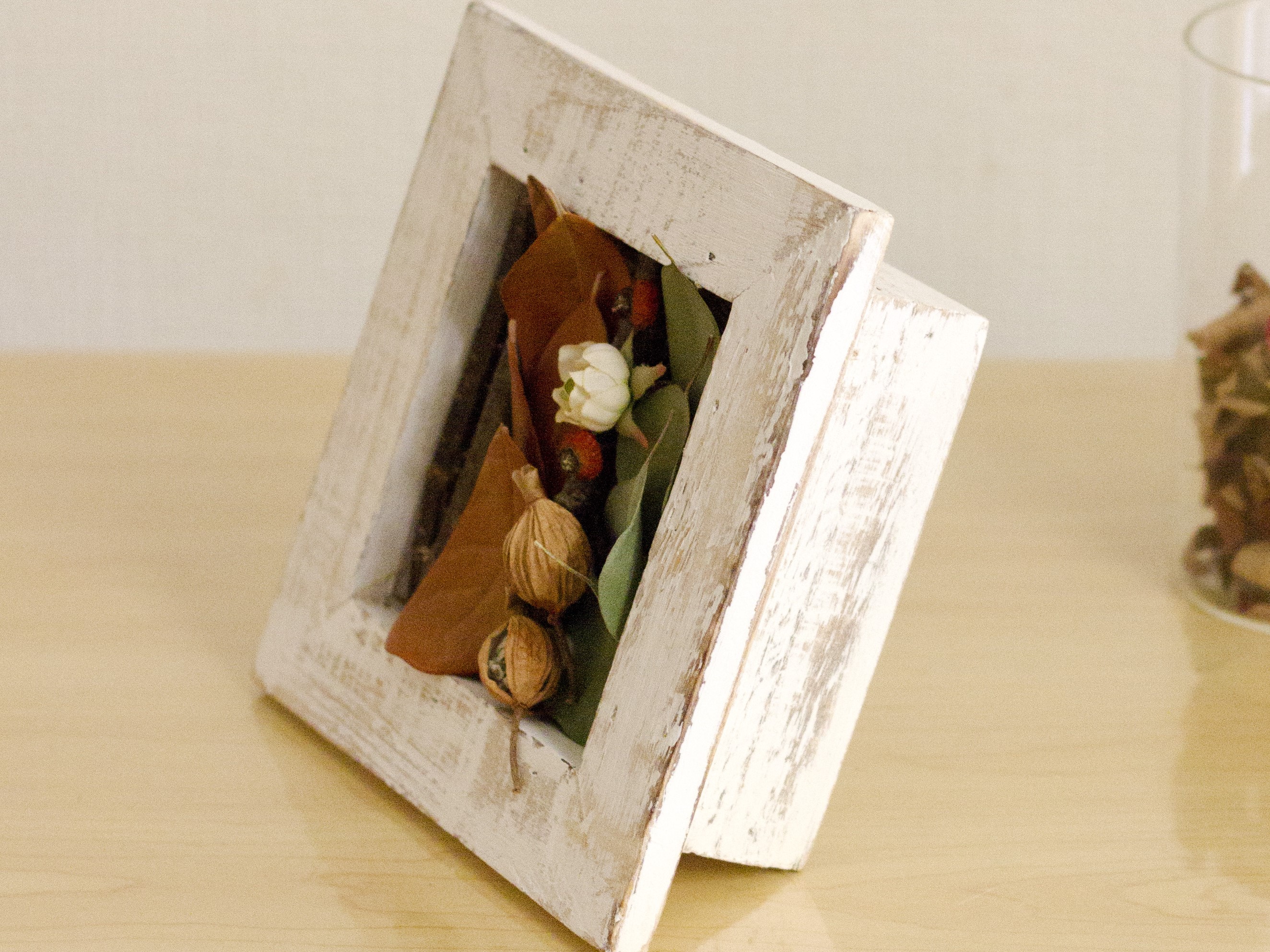 ドライフラワーを使ったコラージュ作品を制作し、ラッピングのうえお持ち帰りいただけます。